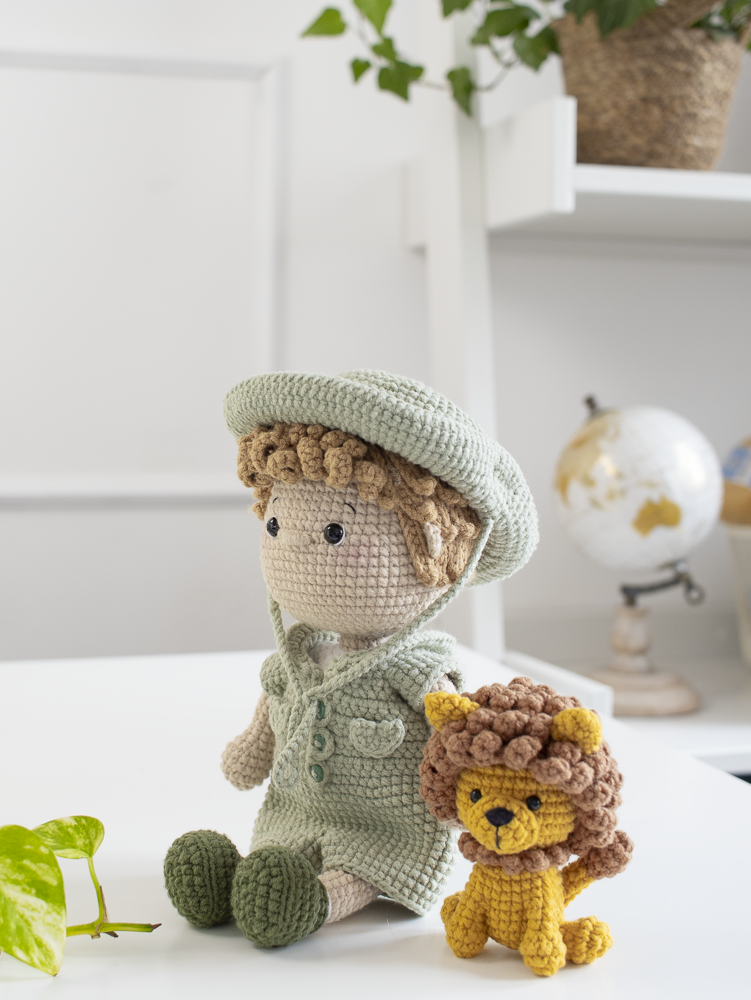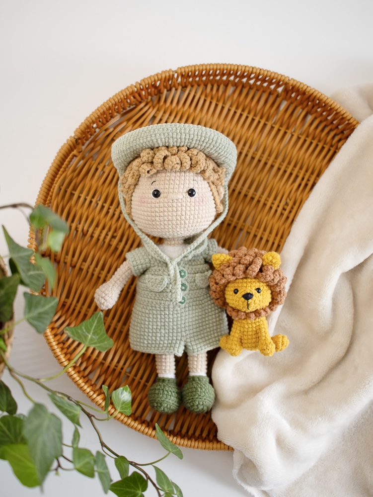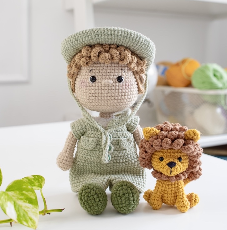 Passo a passo de como fazer um menino e um leãozinho em amigurumi.